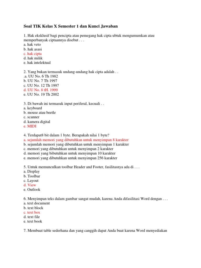 Berikut ini adalah beberapa contoh soal ujian akhir semester tik beserta jawabannya.