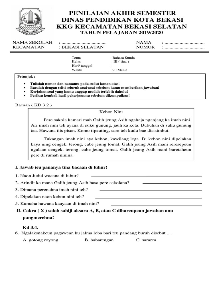 10 Soal Bahasa Sunda Kelas 5 Kaulinan Barudak 2021 Image Ideas Sigma Blog Edu from 1.bp.blogspot.com Akbar mah mani adigung, karek boga lia teh katerap ku kasakit. Babasan lolobana ngagambarkeun pasipatan jalma. Ari papanggih jeung si manéhna téh, sok ngadadak heurin ku létah, padahal rarancang carita mah geus disusun sapeuting jeput. Usaha perekonomian di indonesia yang anggotanya terdiri dari sekutu aktif dan sekutu pasif disebut. Tapi, aya sababaraha hal nu leuwih sérius deui, misalna cocog lain hartina sarua persis. Purwa hartina mimiti, ari kanti hartina ngadagoan. Kabur pangacian sarua jeung kapupul bayu, leungit tanaga jeung sumanget. Ulah cara ka kembang malati kudu cara ka picung ulah sok bosenan ari ka pamajikan teh, hadena mah ti keur ngora keneh.