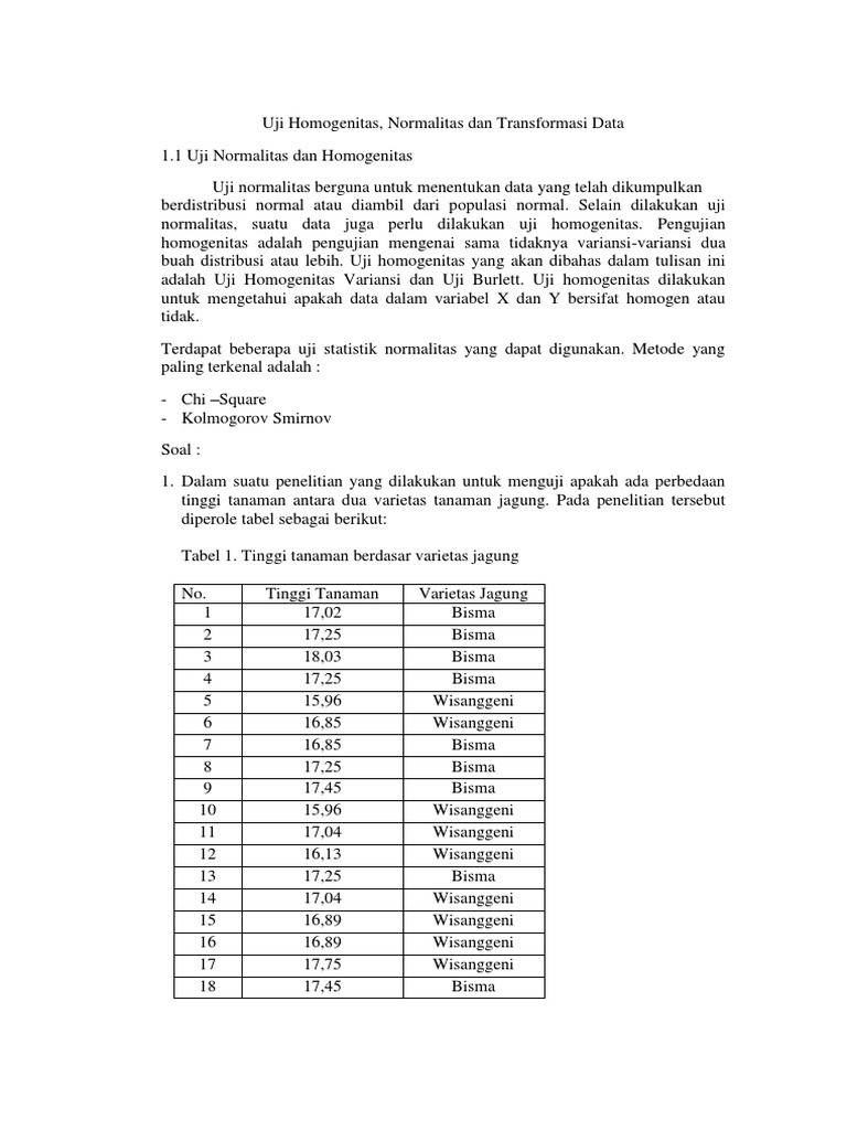 Berikut ini terdapat beberapa contoh soal normalitas, terdiri atas: Uji normalitas dan uji homogenitas. Contoh soal uji normalitas.pdf 2. Uji homogenitas bartlett manual vs spss. Untuk mengetahui bentuk distribusi data dapat digunakan grafik distribusi dan analisis statistik.